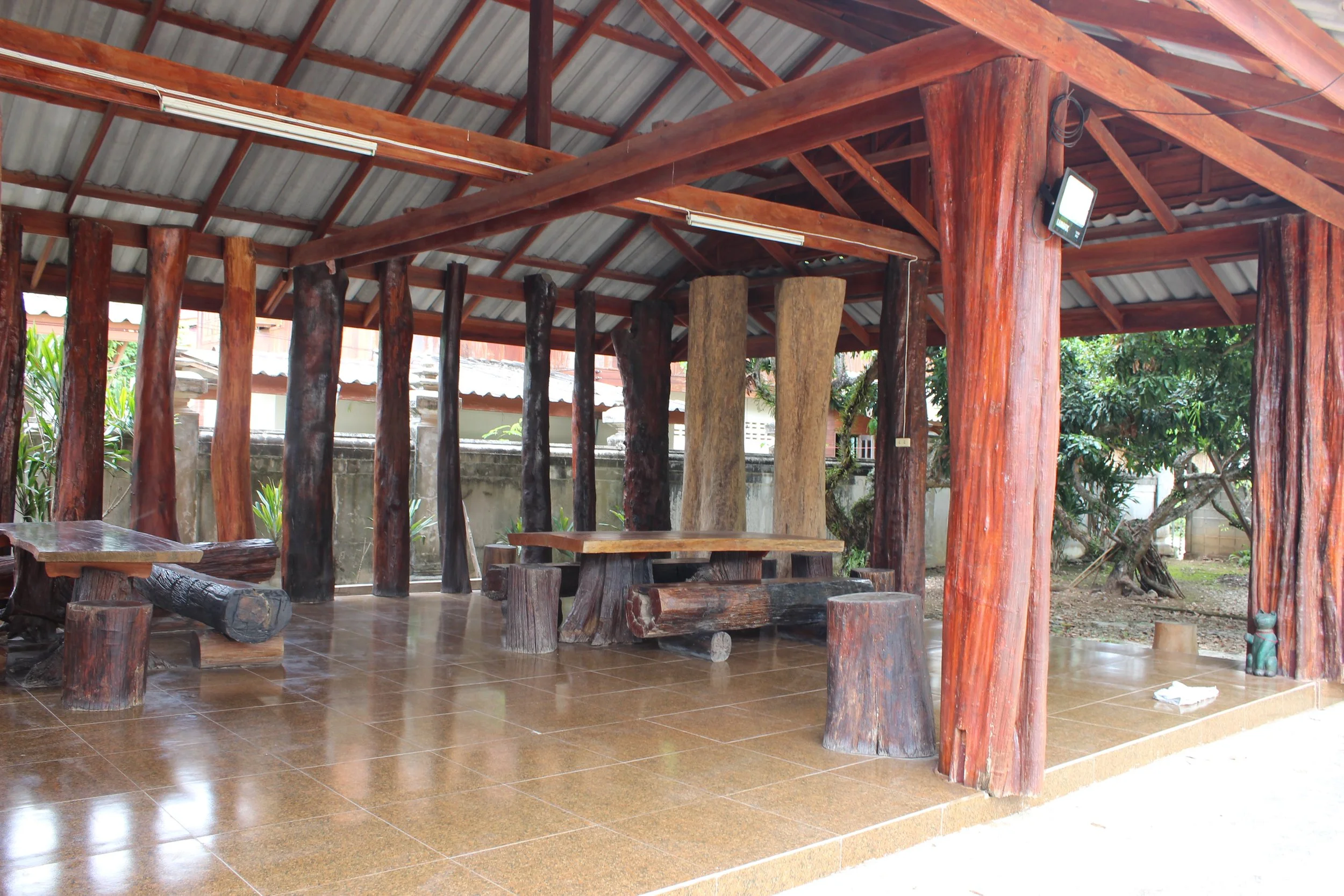 That evening, back in the hotel Sawang and I ordered takeout to the lobby. We ate amid the deafening sound of rain on the metal room, surrounded by huge flying bugs who were using the hotel lobby to shelter from the rain.