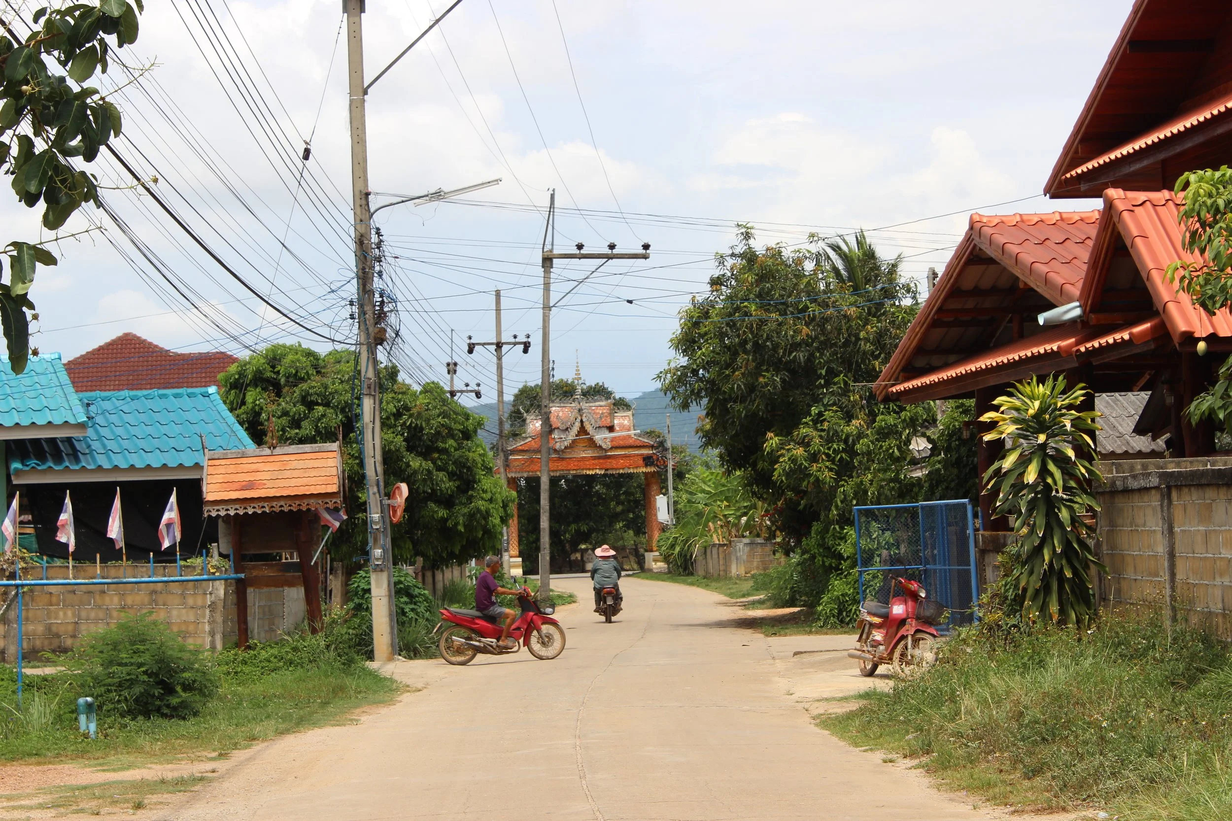 He also pointed out piles of what looked like rubbish sitting on the wall of one house, and explained that these were actually an offering to spirits. While most villagers are Buddhists, many also have the more traditional Thai beliefs, he explained.