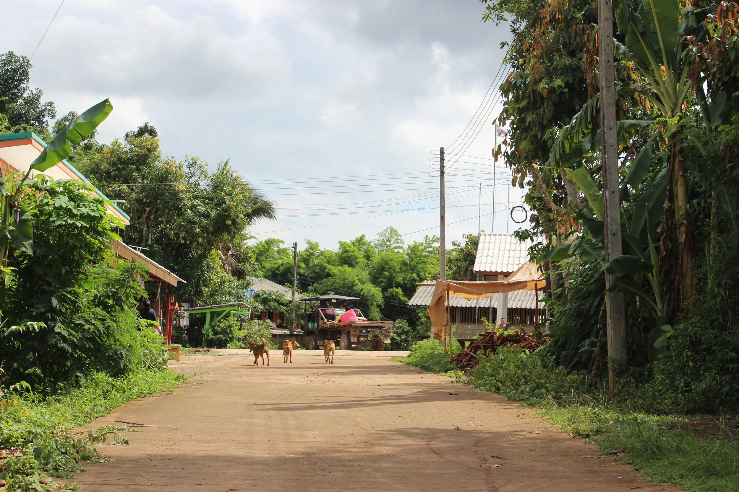 When we arrived at Jum Krai – a village of 50-60 houses – we went straight to the house/office of the village head. The solidly-built house had cars parked in the spacious front yard, around which dogs and chickens ran freely with full access to the road.