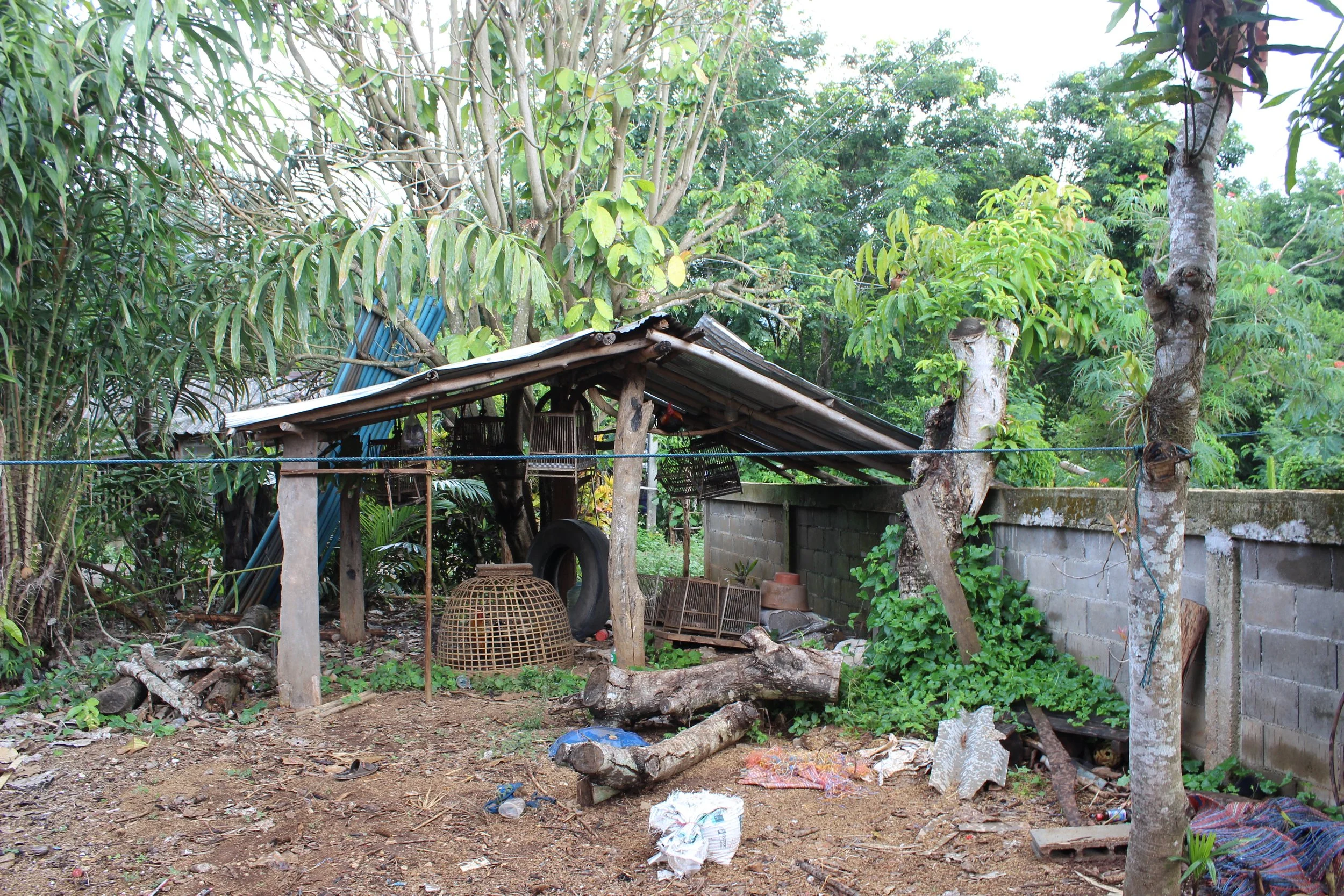 Outside one house sat a sad rooster trapped under a basket and another (happier looking) one sitting on a rafter. Sawang told me that these could be for fighting, or they could be for taking into the forest, where their cries would attract more animals.